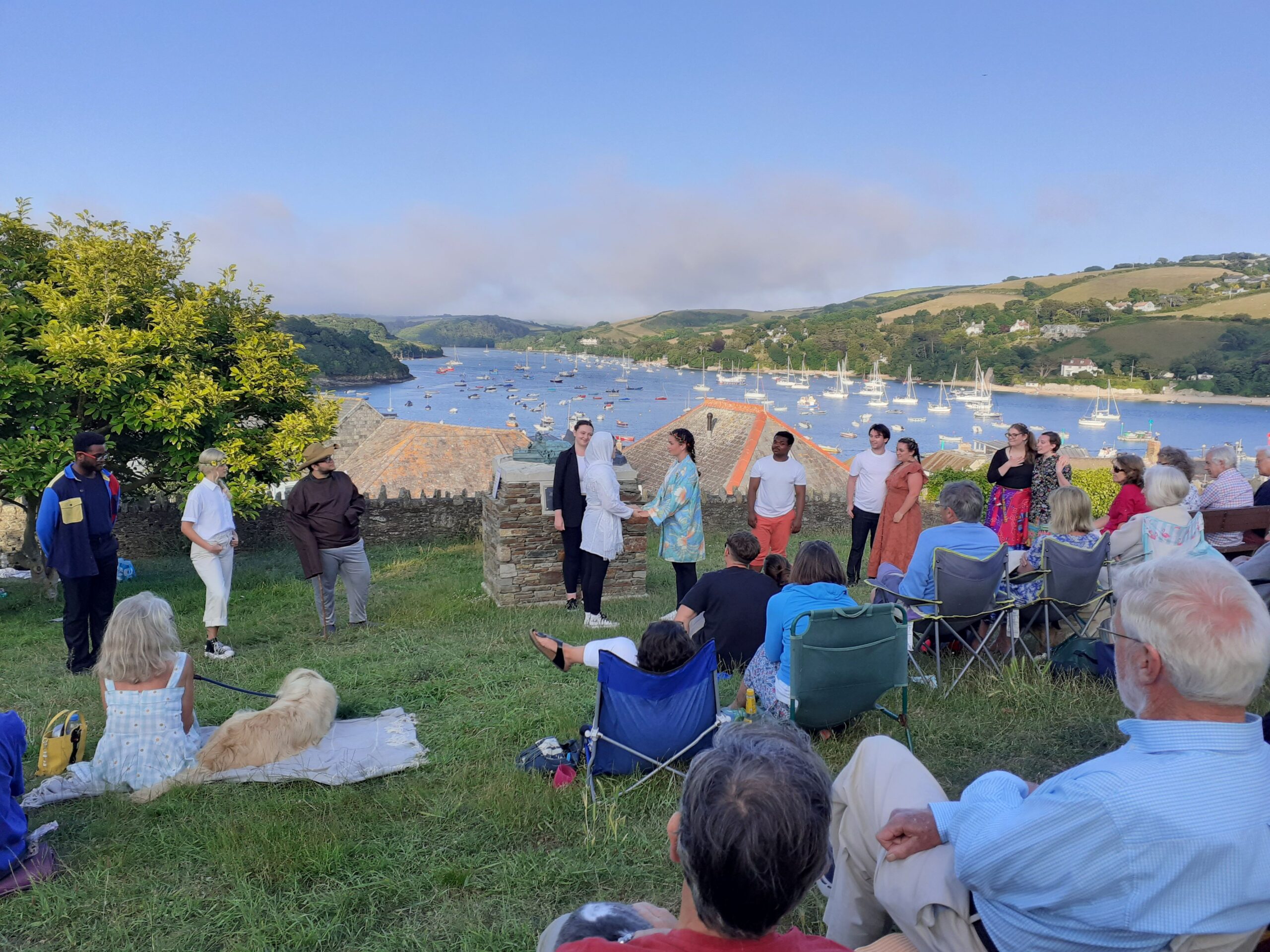 NIAGARA DRAMA STUDENTS 2023 IN THE FINAL SCENE OF ‘AS YOU LIKE IT WITH SONGS’ PERFORMED IN THE BEAUTIFUL SETTING OF SALCOMBE HARBOUR IN AID OF THE ROYAL NATIONAL LIFEBOAT INSTITUTE.